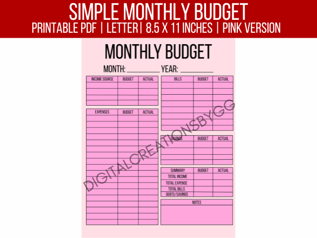 This blue version is perfect if you want a simple yet refreshing design to keep you motivated. Print it out for your binder, keep it at your desk, or use it digitally—it’s a straightforward way to budget while keeping things neat and stress-free!